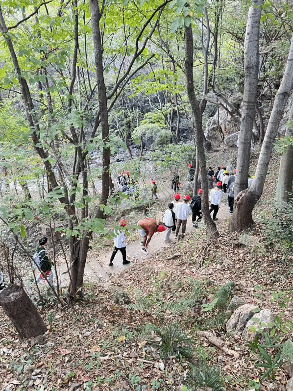 10月9日,全体师生前往楚北第一峰、万景园林前后、大垭与千年银杏之间、灵官垭与南风垭之间、两王洞进行现场学习,教学目标主要包括熟悉断层、褶皱、单斜地质构造的成因及其野外地质识别方法,熟悉岩溶地貌的成因及主要表现形态,识别地质图中的岩层产状、地层接触关系和常见地质构造参数,认识沉积岩层、变质构造、河流阶地等。