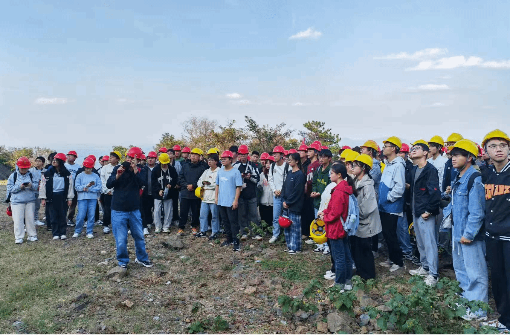 10月10日,全体师生前往状元顶、白龙池进行实践教学活动,教学目标主要包括继续学习常见的褶皱地质构造的类型及地质识别,判别经过内动力地质作用和外动力地质作用后褶皱区域的“正地形”和“负地形”,观察地质罗盘的构造,并熟练运用地质罗盘仪测量岩层的产状三要素。