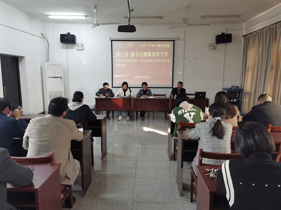 接着,副院长郭波对下阶段的教学工作进行了细致的安排,传达学习了《英国365集团本科专业设置与动态调整实施办法》《英国365集团学生学籍管理办法》《英国365集团本科教育教学审核评估迎评促建工作方案》等文件。副书记魏佩领学了《中共湖北省纪委通报:关于6起不担当不作为典型案例的通报》《英国365集团章程》(2023年修订版)等文件。