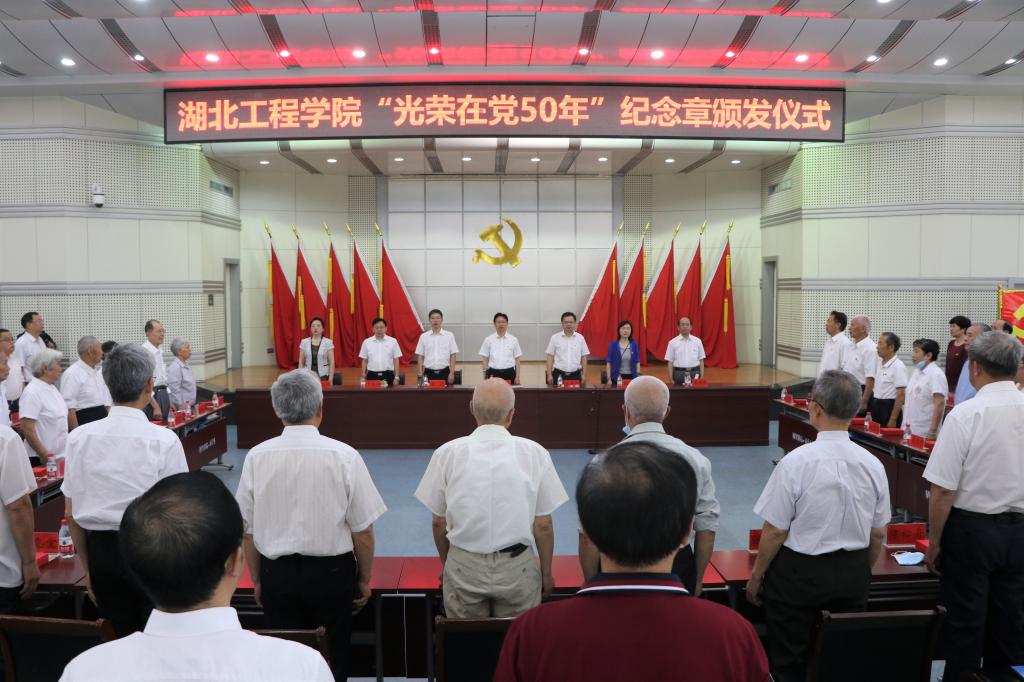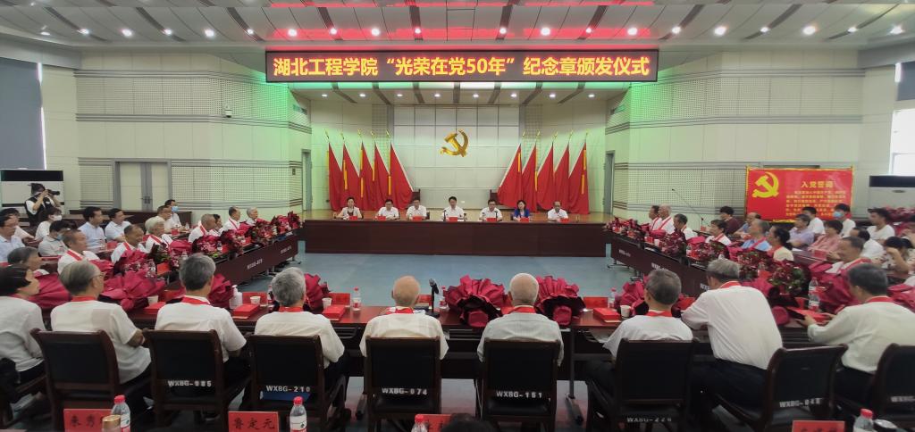 (转自:新闻中心)6月24日上午,湖北工程学院“光荣在党50年”纪念章颁发仪式在文学楼学术报告厅隆重举行。获颁纪念章的老党员代表,学校党委书记彭瑜、校长潘慧明等全体在校领导班子成员,学校党务群团部门负责人,新技术学院党委和学校各党总支书记、教学学院的新党员青年学生代表等出席仪式。颁发仪式由潘慧明主持。