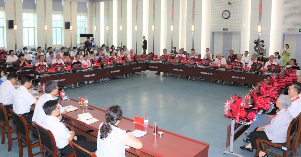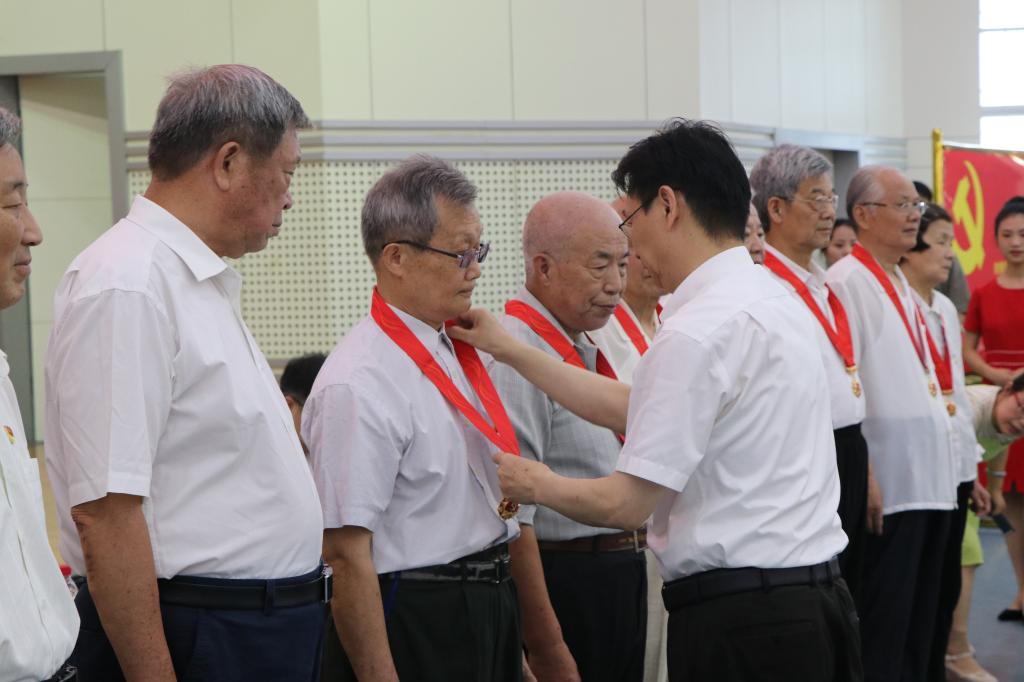 曾获“全国优秀教师”称号、化学与材料科学学院退休教师乐立新教授代表获颁纪念章的老党员作了情真意切的发言。