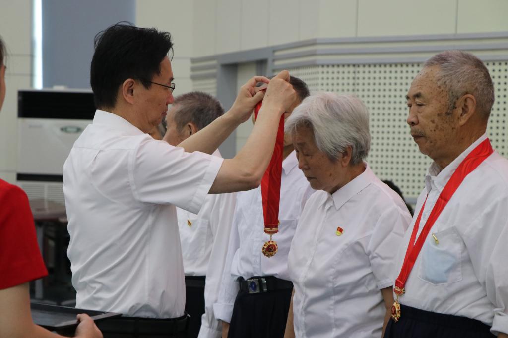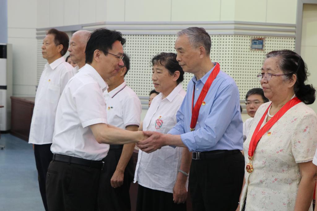 值此建党100周年来临之际,彭瑜代表学校党委向获颁纪念章的老党员们致以节日的问候和最崇高的敬意,衷心感谢全体老党员、老干部为学校发展所做的贡献。他指出,老党员们是峥嵘岁月的亲历者、是艰苦奋斗的参与者、是蓬勃发展的见证者,亲身经历了学校“从无到有”的沧桑巨变、“从小到大”的跨越发展、“从弱到强”的光辉历程。全校老党员们几十年如一日,立足本职、拼搏奉献,用最美的青春年华,默默无闻地为党的教育事业工作,“一颗红心永向党”的政治品格、“俯首甘为孺子牛”的教育情怀、“以身示范敢为先”的责任担当、“撸起袖子加油干”的奋斗精神,在党为党的崇高思想境界和优良作风,永远值得我们认真学习传承,不断发扬光大。同时,他希望老党员、老干部们一如既往的支持和关心学校各项事业的发展,继续做好传帮带、发挥余热。