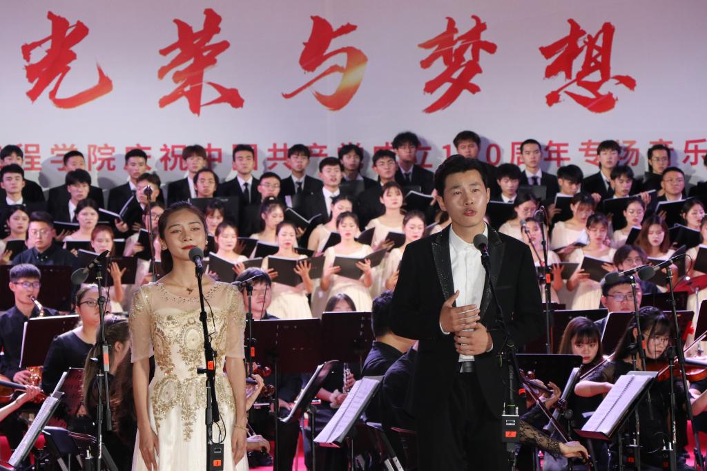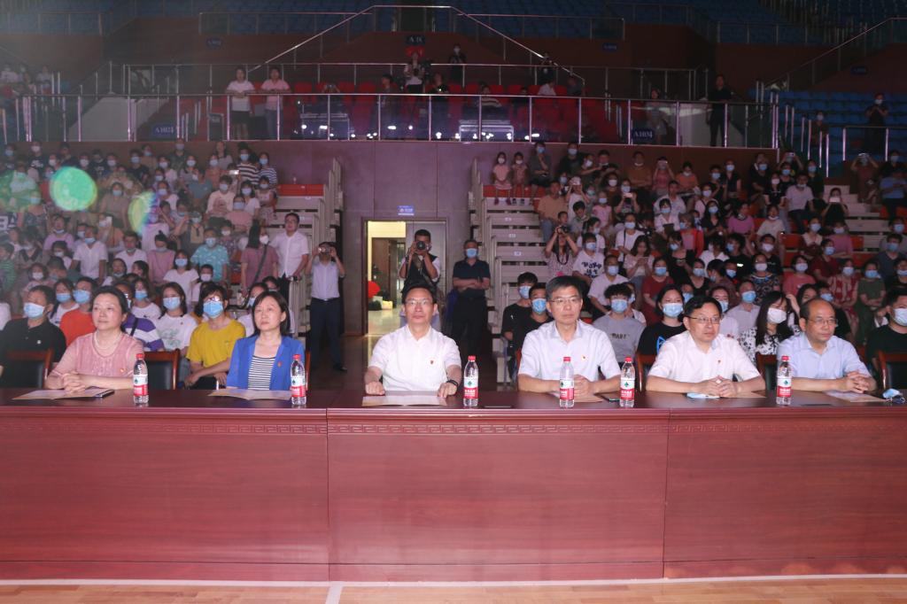 彭瑜、汪达、邹虹、丁远坤、鲁旭东、徐玉琼等校领导,全体中层干部、全体党员教职工,离退休党员代表、学生党员代表等参加音乐会。