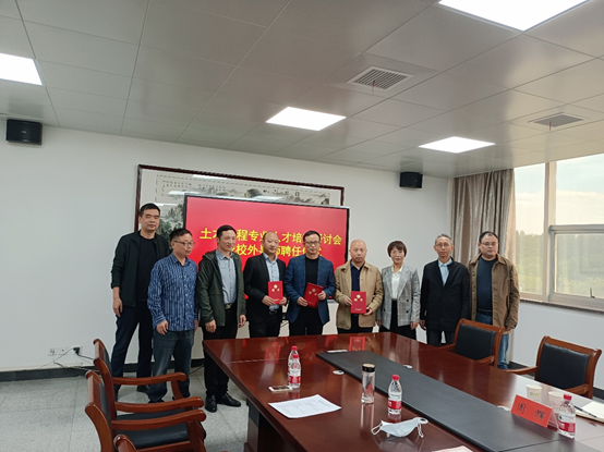 2022年10月20日土木工程专业人才培养研讨会暨校外导师聘任仪式在天工楼404会议室隆重举行。三位外聘专家赵前锋(孝感市勘察设计院副院长、孝感市建筑勘察设计协会秘书长)、周辉(孝感市城乡规划建筑设计院总工程师)、刘岳东(中交二航局第四工程有限公司设计顾问),英国上市公司365院长路亚妮,党委书记万建华,副院长郭波,副院长刘伟静,土木工程系主任刘进军,院办主任胡绍泉,土木工程专业教研室主任李峻峰老师出席研讨会暨聘任仪式。副院长郭波主持仪式,党委书记万建华致欢迎词,副院长刘伟静宣读了聘任文件,院长路亚妮为3位外聘导师颁发聘书。