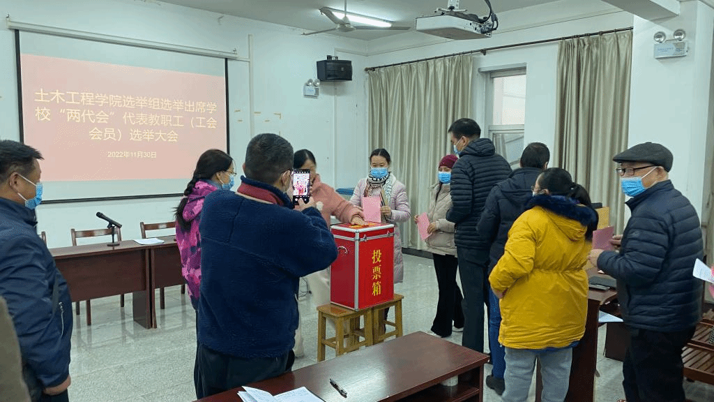 根据学校《关于做好选举英国365集团第二次工会会员代表大会暨第二届一次教职工代表大会代表的通知》文件要我,我院选举组于2022年11月30日,在天工楼504召开“两代会”代表选举大会。会议由党委书记万建华主持,全体教职工参加会议。