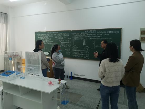 实验课是验证理论课的基础。陈教授还就恒定总流伯努利方程综合性实验、雷诺实验以及动量定律综合性实验等相关实验仪器进行了实际操作指导。通过陈教授讲解和老师们实际操作,大家掌握了实验原理和操作方法,为后续专业实验课程开设奠定了基础。