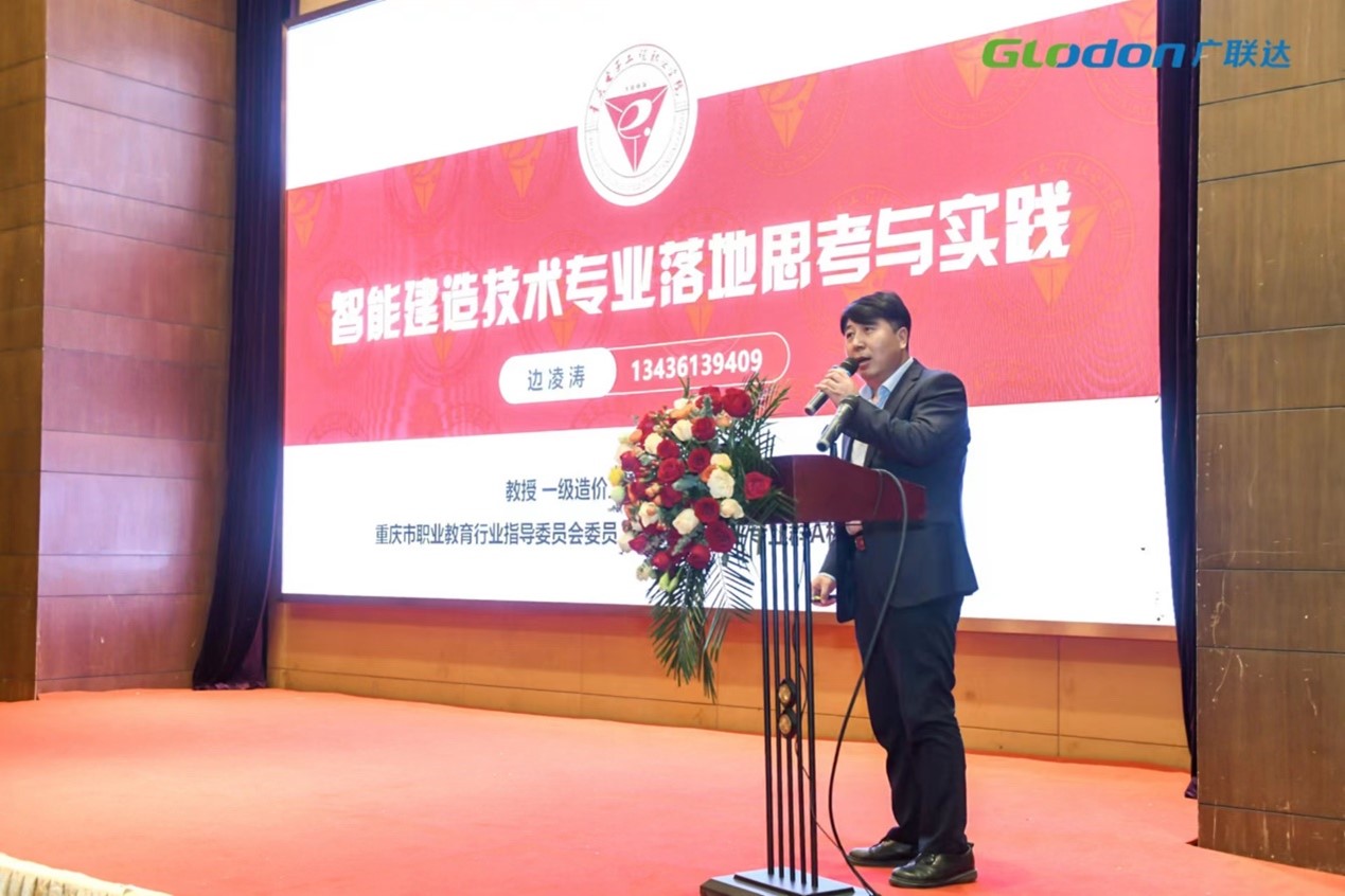 紧接着重庆电子工程技术学院副院长边凌涛做了以《智能建造技术专业落地思考与实践》为主题的报告,主要从专业设置、建设难点、培养方案以及专业建设等四个方面进行了分享。