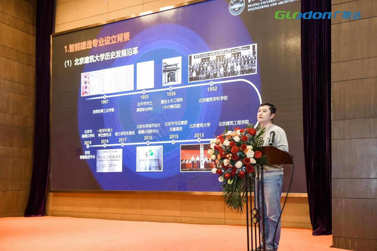在大会上北京建筑大学智能建造系主任侯敬峰做了以《智能建造专业建设与人才培养的探索与实践》为主题的报告,侯主任就北京建筑大学智能建造专业设立及人才培养定位、智能建造专业建设及人才培养实践、智能建造专业学生调查与建议三个方面进行了分享,对智能建造专业建设提出了建议。