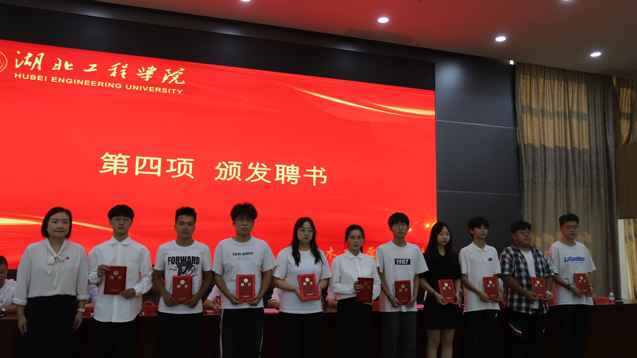 院长路亚妮代表学院为新生班主任颁发聘书,副书记魏佩为新生班主任助理颁发聘书。