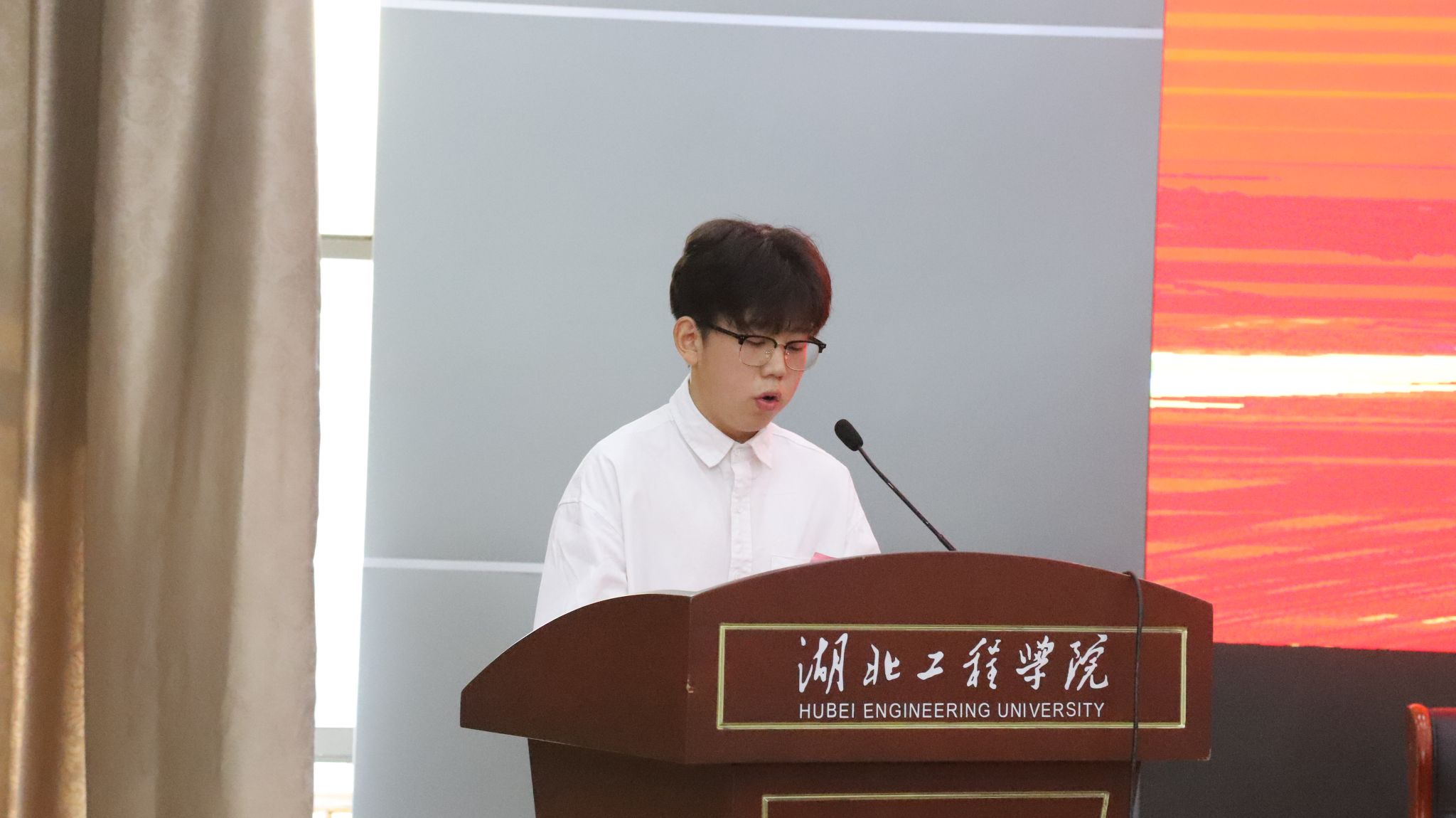 新生代表23342班高鹏同学向热心帮助新生报到的师长们表达了感谢,他表示很高兴加入土木学院这个温暖有爱的大家庭。他首先回首了高中三年苦读求学生涯,并结合自己对校训“严以治学,诚以立身” 的理解表达了对大学生活的期待,他号召同学们树立人生理想目标,珍惜美好时光,勇敢无畏、脚踏实地去探索、去发现、去创造辉煌而美丽的明天。