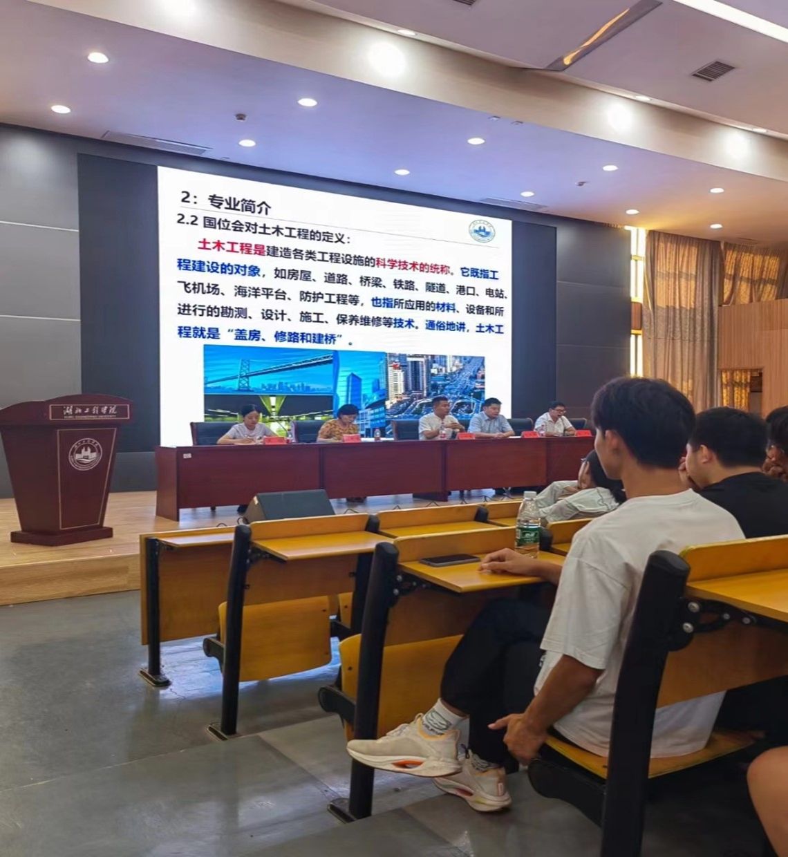 本次会议由土木工程系支部书记吴静老师主持,外聘教师中科路桥设计院副院长刘兴军、湖北亿岩工程勘测有限公司董事长张艳杰、颜燕祥老师主讲,土木工程专业新生全体班主任、教师代表及土木工程专业全体新生参加。