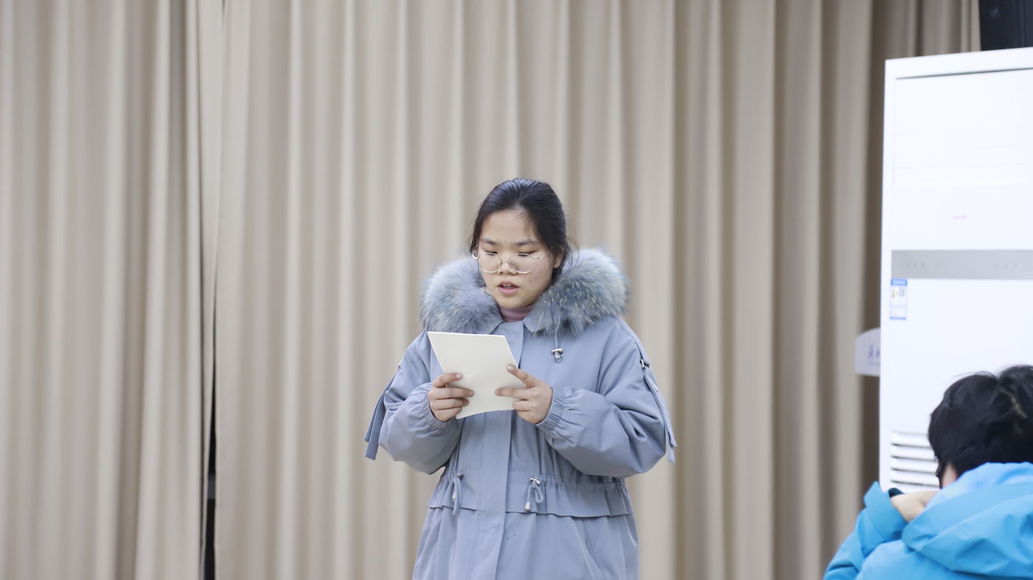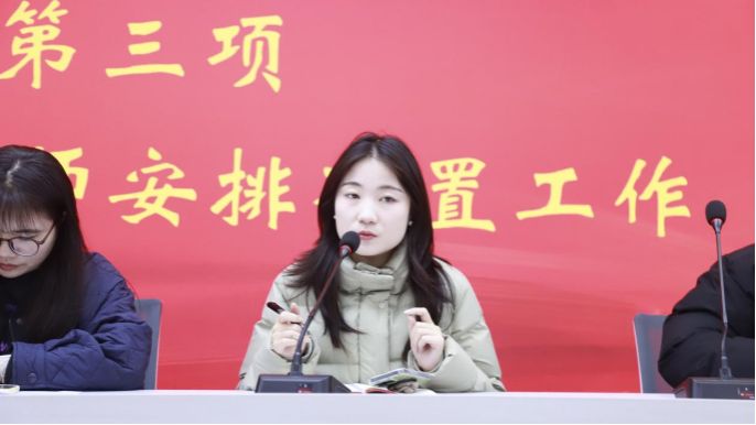 随后,学生干部代表黄恩泽、曹敬坤结合寒假返家乡社会实践活动分享了心得体会。他们讲述了在基层实践中的所见所闻、所感所悟,表达了以青春之力服务社会、增长才干的坚定信念,真挚的分享赢得了在场师生的阵阵掌声。