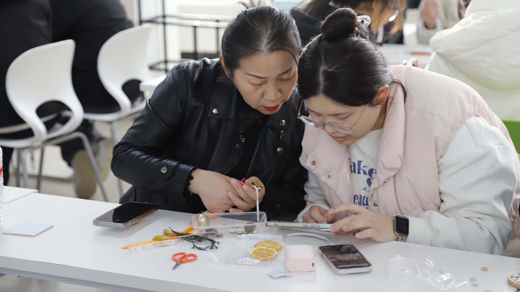 作为心理赋能的创新环节,接下来的“共创·手作时光”深受欢迎。师生们混合编组,共同投入创意杯垫、车挂香囊和手做相框的制作中。这种需要专注与耐心的手工艺活动,本身就是一种有效的正念练习和压力管理方式,能够让同学们从紧张的公式演算中暂时抽离,获得心灵的放松与疗愈。在指尖的协作中,师生间的交流变得更为轻松自然,围绕学业、生活乃至个人困惑的深入交谈在小组内悄然发生,建立了牢固的社会支持网络,有效缓解了学生的孤独感。