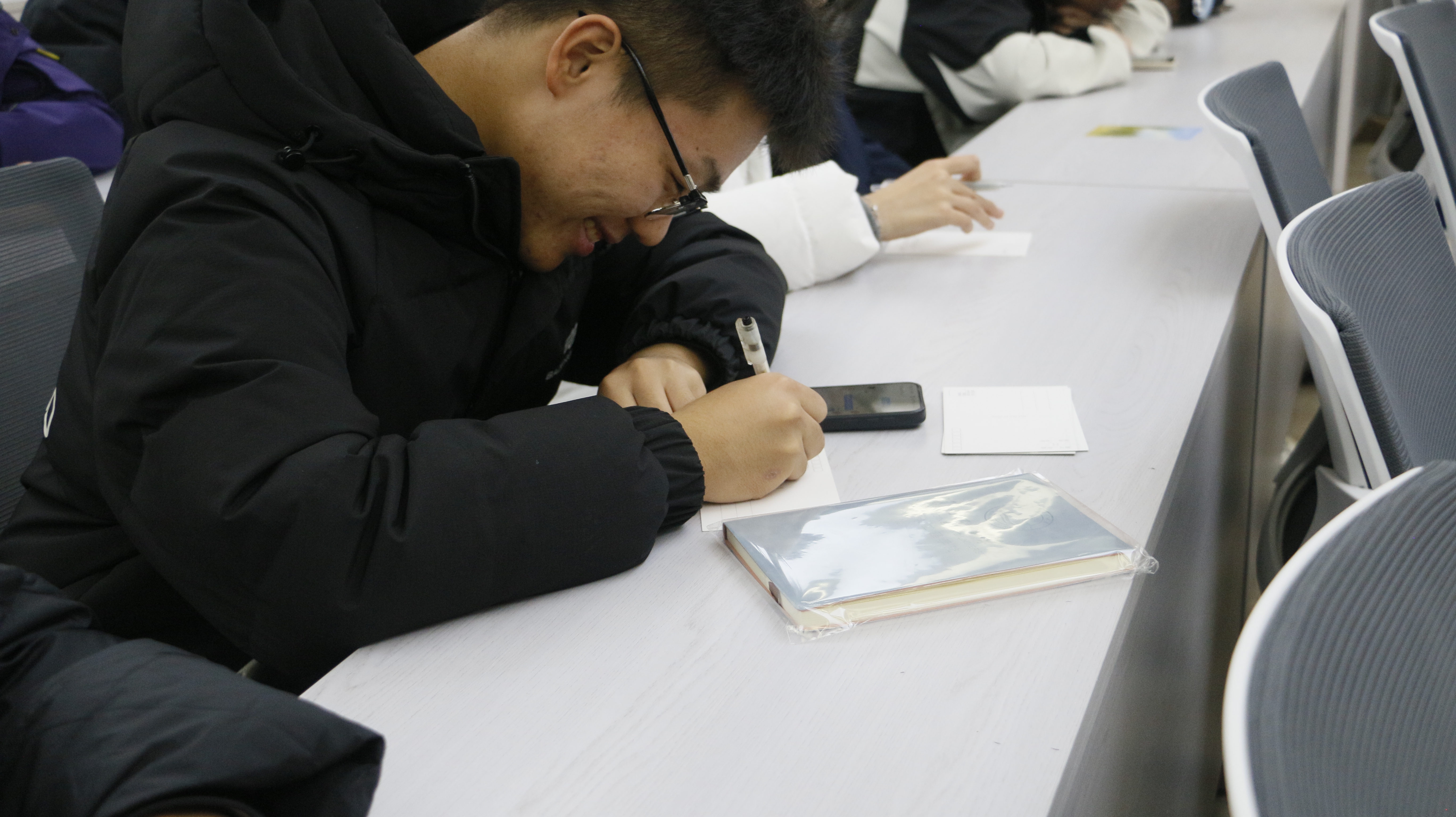 活动接近尾声时,学生们在前期领取的明信片上,认真写下“最触动我的一句话”——有的摘录嘉宾分享的金句,有的写下对自己的励志期许,既是对本次活动的总结,也成为未来自我勉励的“初心卡片”。主持人随后对座谈会进行总结,回顾了分享中的精彩观点,再次强调“诚信是立身之本,感恩是处世之道,励志是追梦之基”,呼吁同学们将本次活动的感悟转化为日常行动。