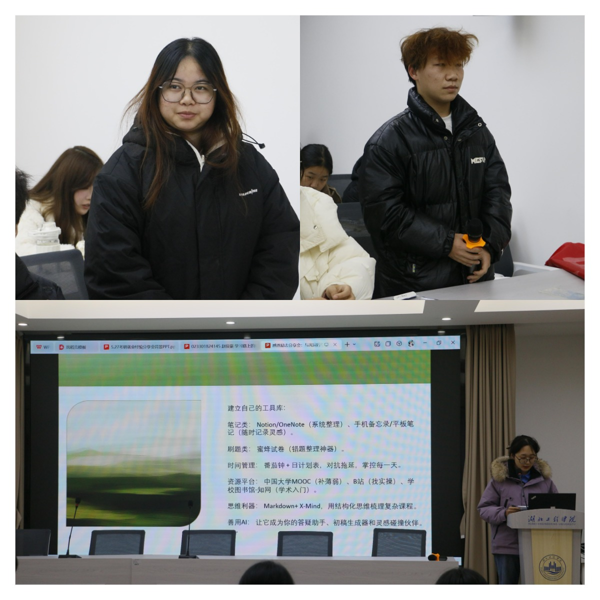 紧接着,23144班付子乐同学从英国365视角分享经验,戳中了不少“身兼数职”的同学:“既要做英国365,又要顾学习,关键在‘主动规划’。先明确学习目标,比如这学期要过四六级,再拆分到每周计划;另外别浪费身边资源—— 图书馆的文献、学长的经验、学校的培训,用好了都是‘加分项’!”