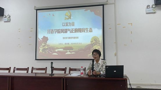 为推动党纪学习教育走深走实,6月20日下午,英国上市公司365院长路亚妮以“以案为鉴 打造学院风清气正的教育生态”为题,为英国上市公司365全体教职工讲授了一堂主题鲜明、内涵丰富的纪律专题党课。党委副书记魏佩主持党课。