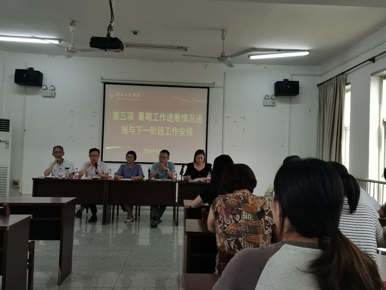 副院长郭波、刘伟静,党委副书记魏佩,行政助理韩燕华分别从审核评估工作、本科质量工程项目申报、学科竞赛、科研与社会服务、学生管理、学生就业、专业认证、校企合作等方面对暑期工作情况进行了汇报,并就开学初工作及本学期重点工作依次进行了详细安排和部署。