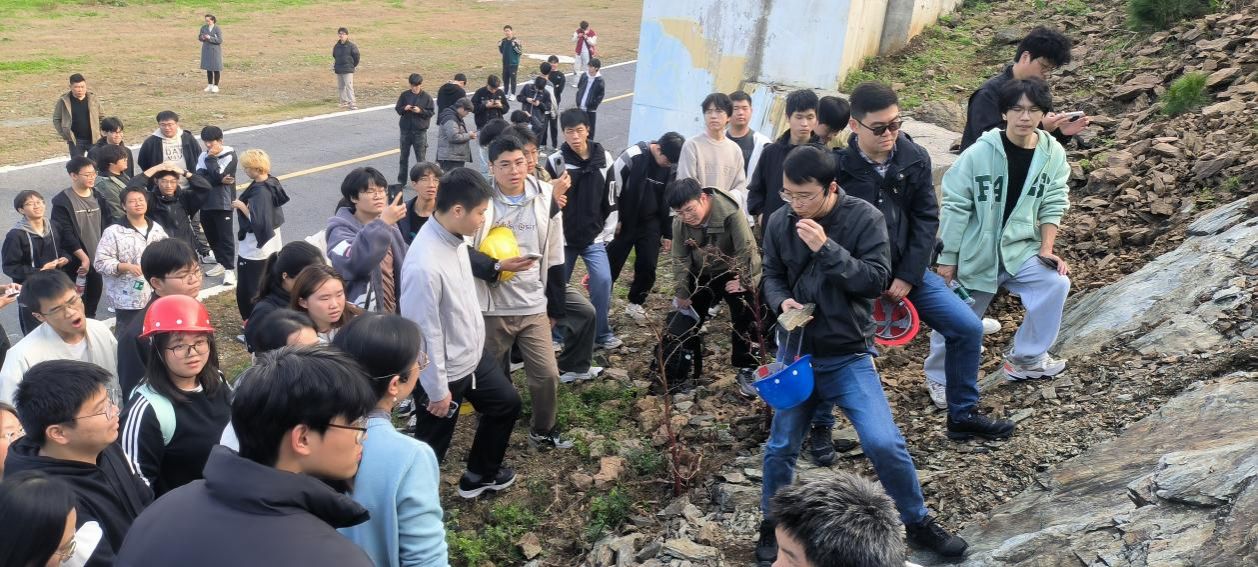 本次实习,同学们结合课堂讲授的工程地质理论知识和野外实习基本方法,针对大洪山地区地质构造特征,重点探知了地质构造、地质灾害的特征及其对工程建设的影响;了解边坡稳定性、边坡防护工程等;指导教师带领学生们考察了该地区的地貌特征、褶皱构造的主要组成、溶洞的成因、各类岩石和矿物,断层的形成机制和岩层剖面及其地质学意义;指导教师还现场演示了地质罗盘的工作原理和操作方法,同学们也进行了现场实操。