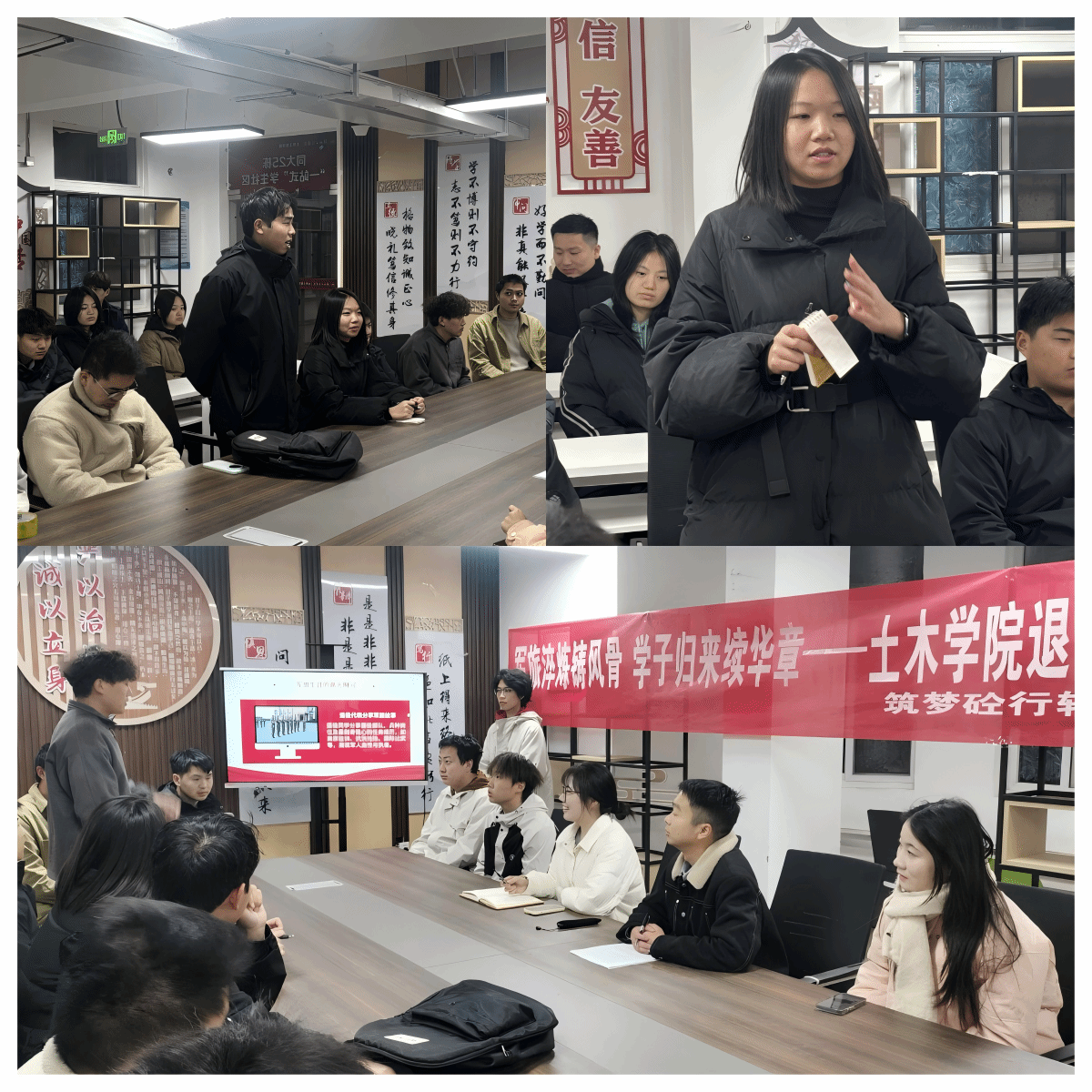 座谈会最后,汪颖老师作总结发言。她首先向退役同学展现出的“听党指挥、能打胜仗、作风优良”的军人品质致以崇高敬意,并指出这些品质正是土木工程领域与科研团队所需要的精神财富。随后,汪老师寄语各位退役同学,要以更高标准要求自己,将部队锤炼出的忠诚品格、钢铁纪律和攻坚精神,转化为学术钻研的动力、团队协作的基石和社会责任的担当,她勉励大家把个人理想熔铸于国家建设的时代洪流,在土木的广阔天地中,以汗水浇筑坚实基座,以智慧勾勒壮美蓝图,实现从保家卫国到筑基建业的崇高价值升华,续写无愧于时代、无愧于军魂的土木青年新华章。