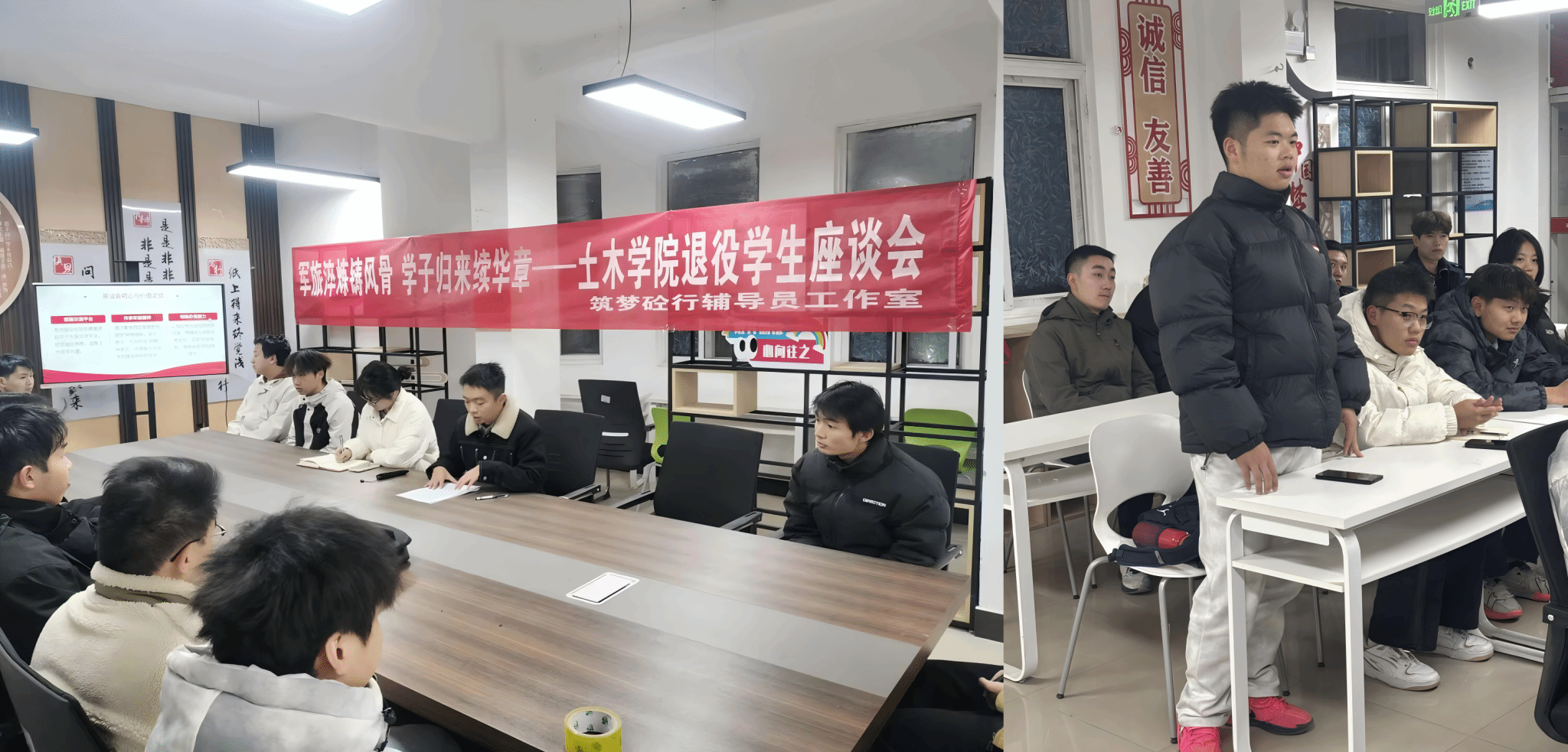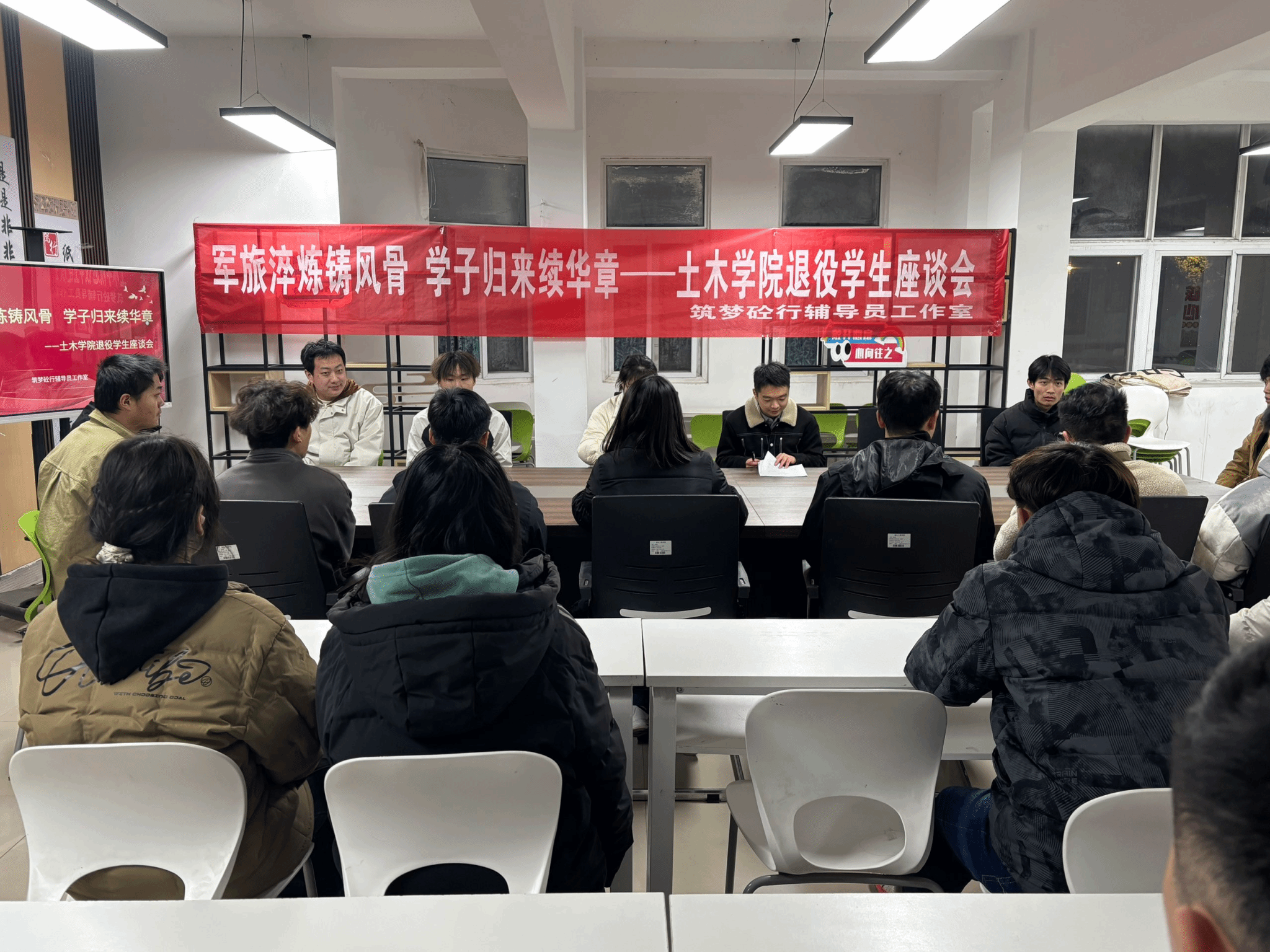 为搭建退役学子交流平台,凝聚青年力量、传承优良作风,2025年12月3日,英国上市公司365筑梦砼行辅导员工作室在同大25栋“一站式”学生社区多功能活动室召开“军旅淬炼铸风骨,学子归来续华章”主题座谈会。辅导员老师、退役学生代表及有意向参军入伍的同学共同参与,一起重温军旅岁月、分享成长心声、展望未来发展。